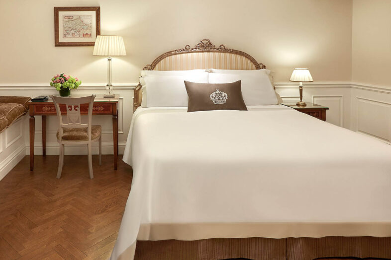 (sleeps 3): bedroom with king-sized or twin beds, rollaway bed at an extra charge, separate living room with a sofa and easy chairs, marble bathroom with bathtub and separate rainfall shower, 2 televisions, some rooms feature a balcony overlooking the city. Some of the rooms can be interconnected.